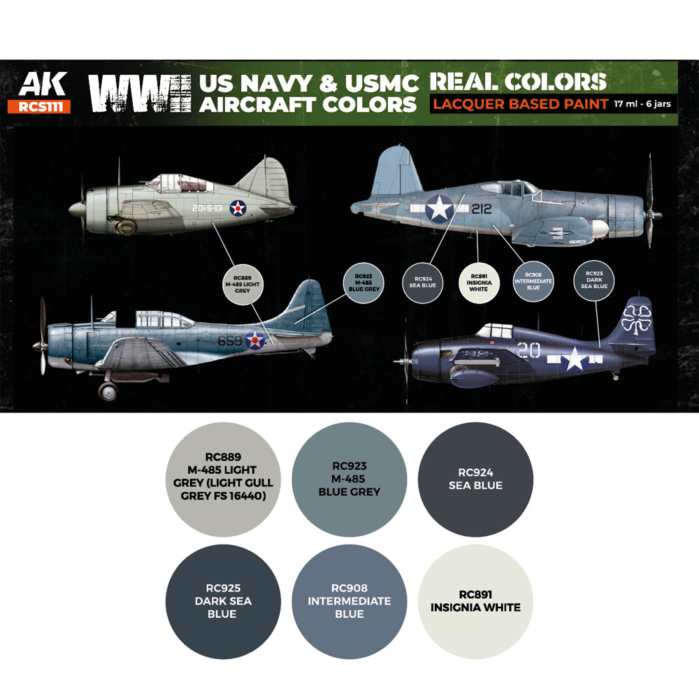 AK Interactive RCS111 WWII USN & USMC Aircraft Colours Lacquer-Based Paint Set