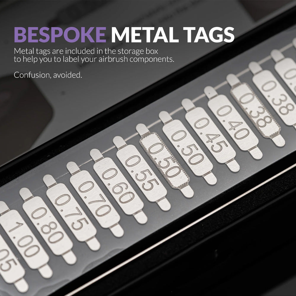 BESPOKE METAL TAGS: Included metal tags let you label and organize your airbrush parts for easy identification. Say goodbye to confusion and keep your workspace clutter-free.