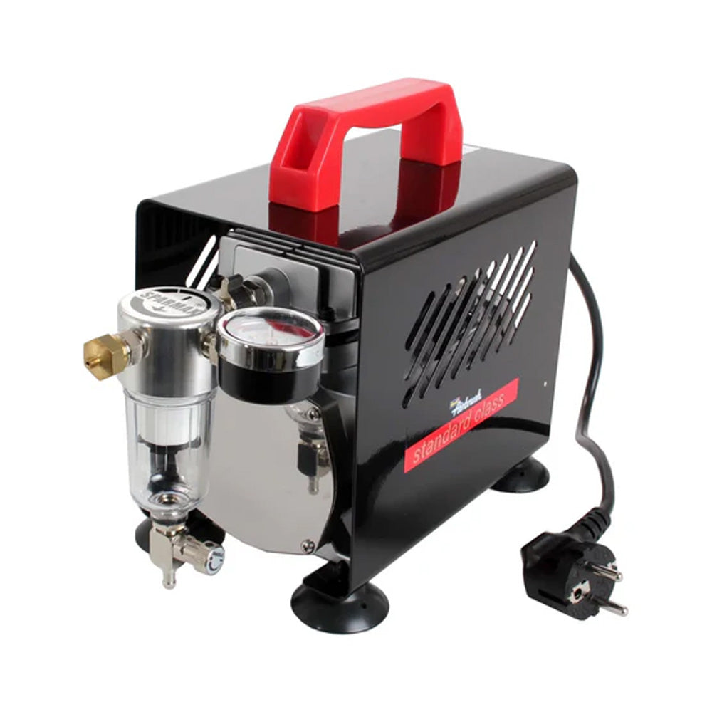 The Standard Class airbrush compressor from Revell is an oil-free piston compressor. It works perfectly with our "Standard Class" airbrush spray gun. It is ideal for ambitious newcomers to the airbrush hobby. Compressor for ambitious beginners! Fitted with EU plug.