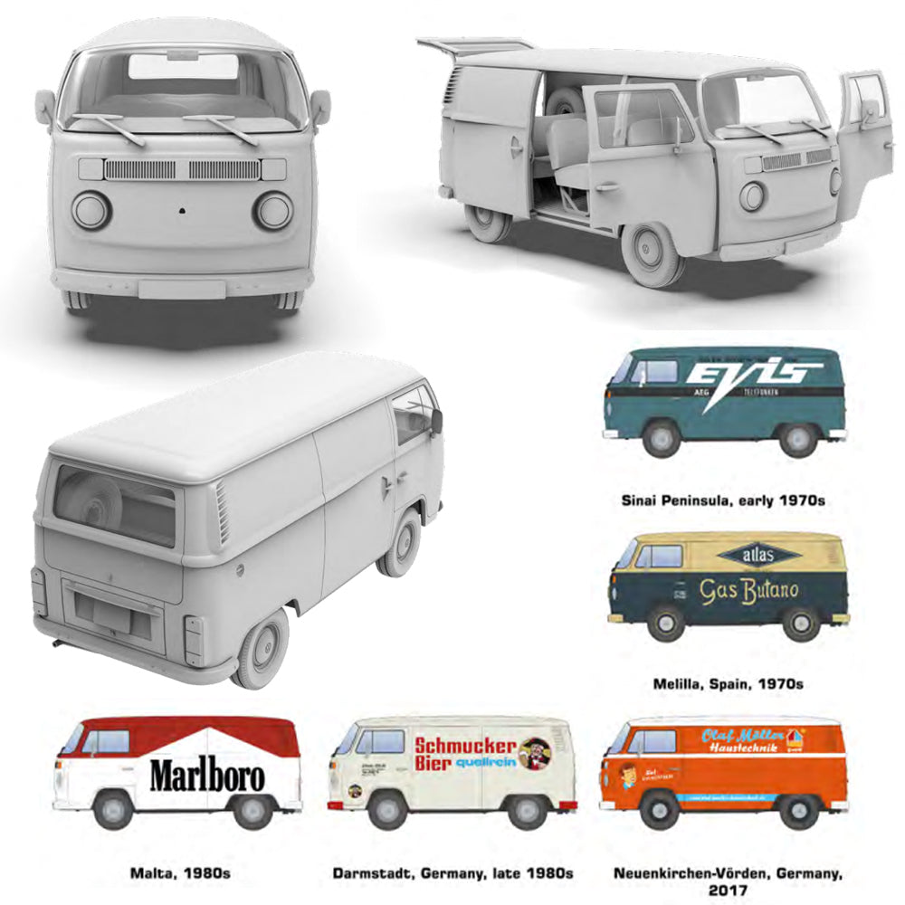 The reference AK35025 represents the closed version of the vehicle with external modifications introduced in 1972. The highlight of this model is a large decal sheet including markings for 5 colorful vehicles used by various private companies from the 1970s until today.