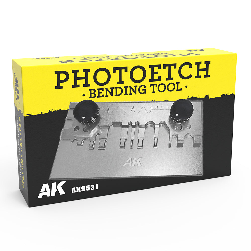 Separate the piece from the photoetch sheet. Place the piece inside the tool by loosening the screws and secure it by tightening the screws again without forcing it. Bend the piece using the blade included in the box until you achieve the desired shape.
