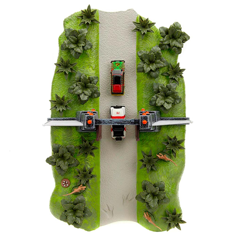 READY TO PLAY: Includes Jeep Wrangler and Ford Explorer Nano vehicles, three dinosaurs and plants. Some assembly required.