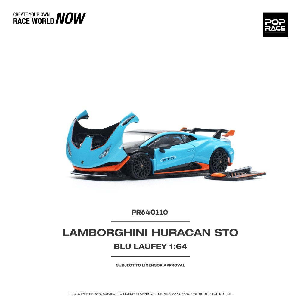 Pop Race Lamborghini Huracan STO Blu Laufey 1:64 Diecast Model 640110