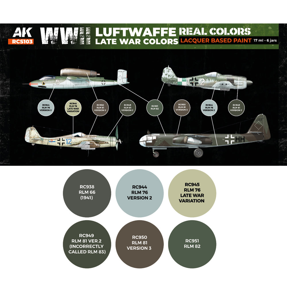 AK Interactive RCS103 WWII Luftwaffe Late War Colours Lacquer-Based Paint Set