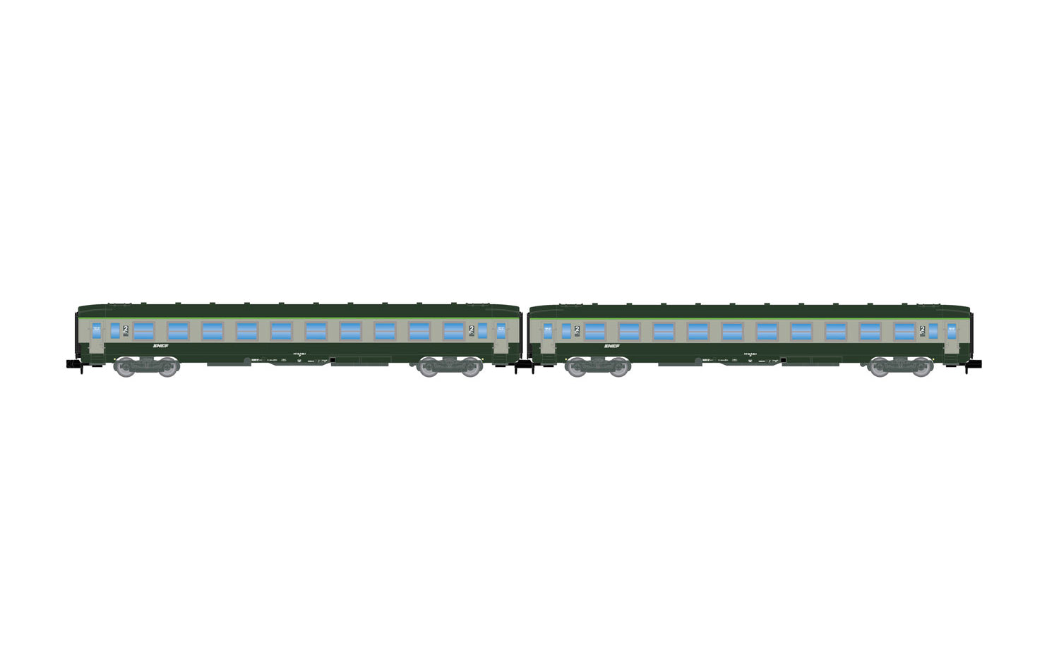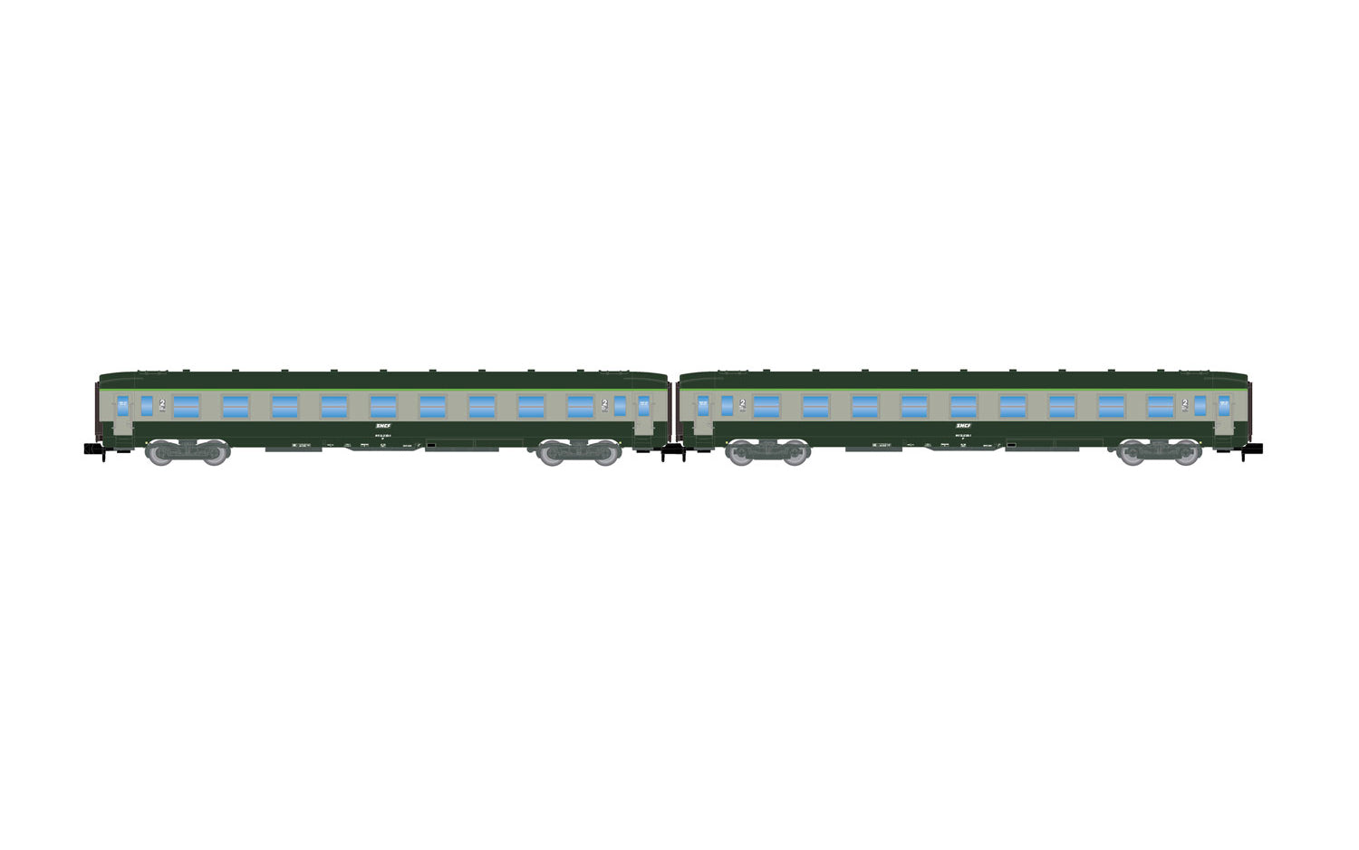 SNCF, 2-unit pack DEV AO coaches (2 x B9), gree...