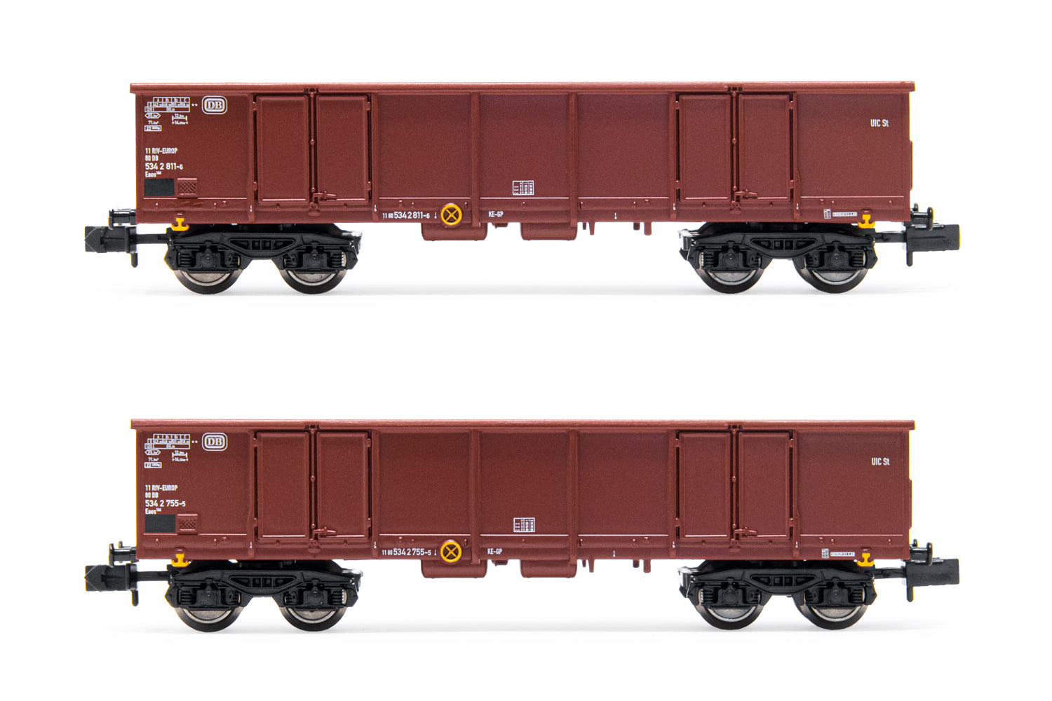 DB, 2-unit set 4-axle open wagons Eaos, brown l...