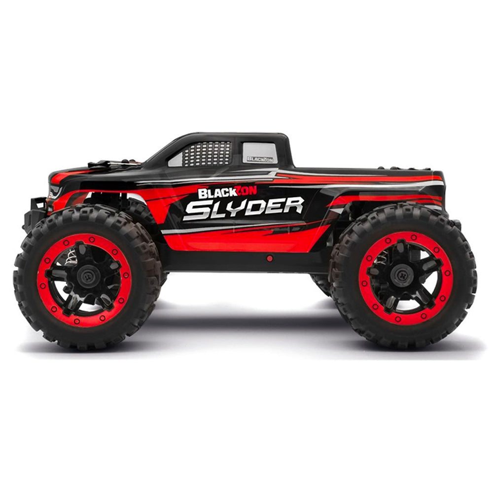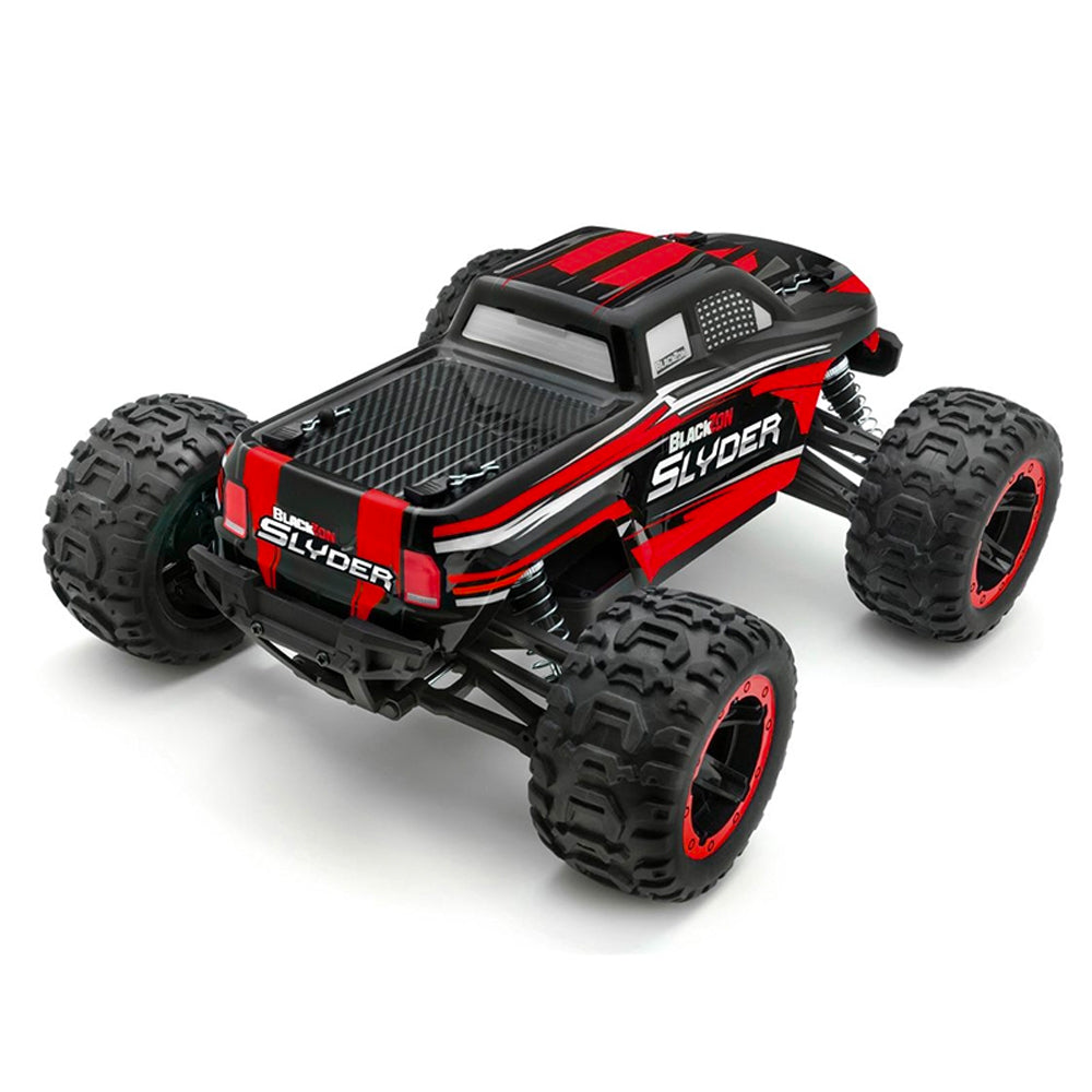 With it's 4WD shaft drivetrain, independent double wishbone suspension, adjustable coilover shocks and 4-Gear differentials both front and rear - the Slyder clambers over all kinds of terrain both indoors and out, giving you all-out fun wherever you choose to drive! Plus with its protective gear cover, servo saver and waterproof electronics - you needn't worry about puddles or debris standing in your way!