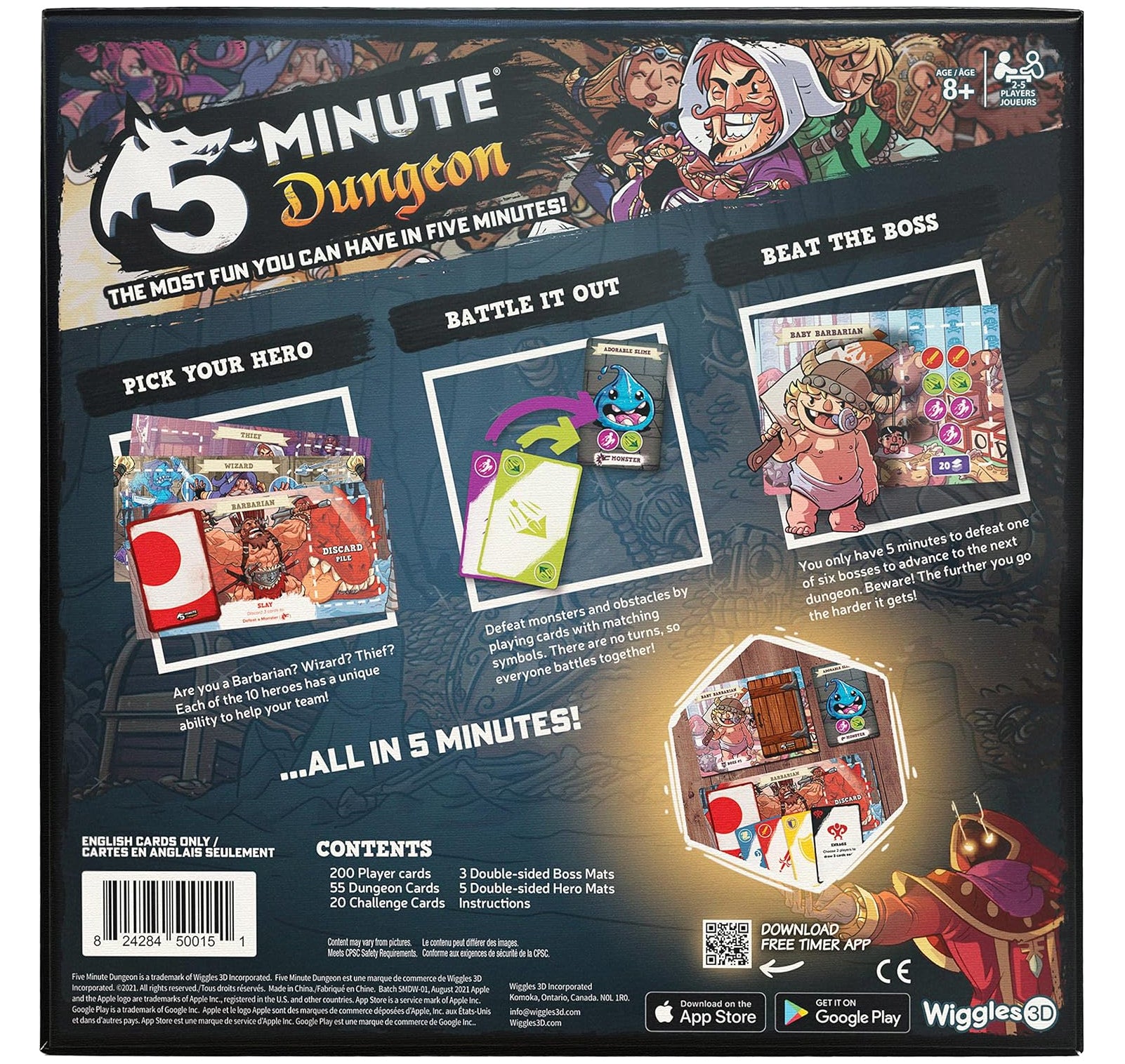 - Easy to learn, quick to teach: Match your cards to each symbol in the dungeon deck to win! 5-Minute Dungeon is perfect for teams of 2-5 players aged 8+.
