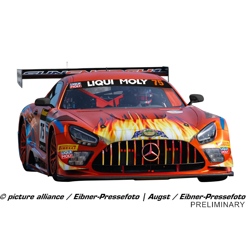 The number 75 Mercedes-AMG GT3 Evo with the classic Sunenergy Racing Team flame ran in the Bathhurst 12-hour race. The race itself is a classic and enjoys immense popularity among the driving community. The Mercedes-AMG GT3 Evo ‘Sunenergy Racing, No.75’ features an attention-grabbing red-hot flame print.