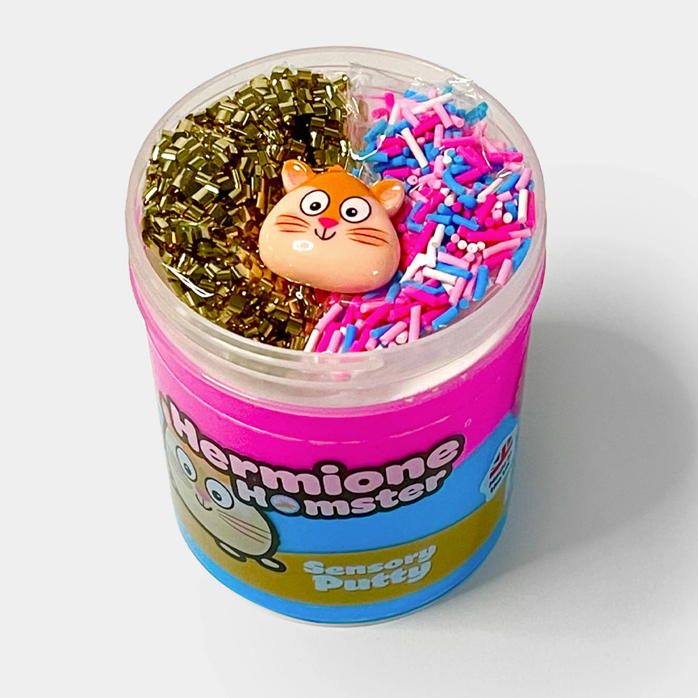 Topped with sparkly gold bingsu beads and clay sprinkles, Hermione Hamster Sensory Putty is a feast for the senses. Plus, each jar includes a collectible charm featuring the adorable Hermione Hamster!