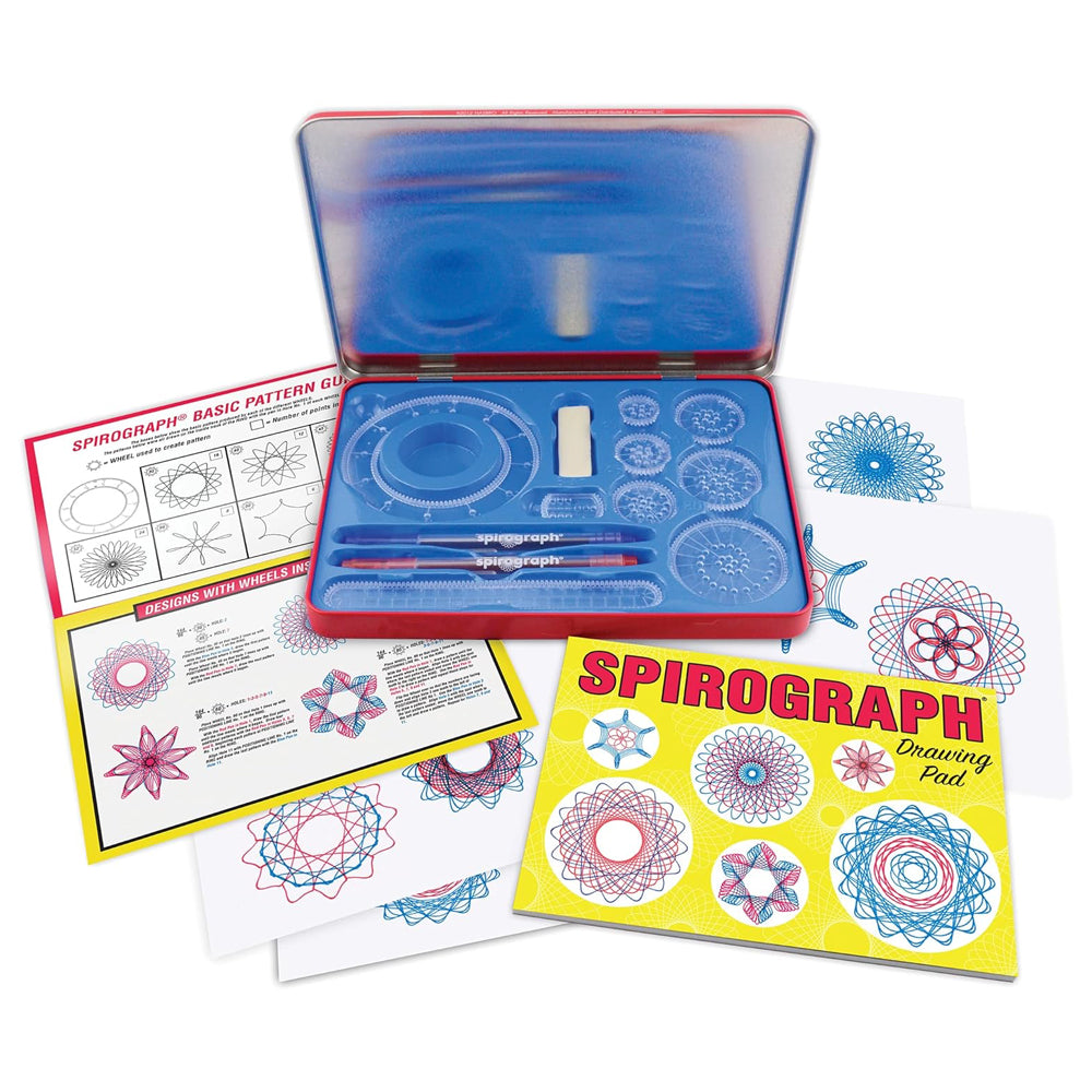 With all the iconic wheels and rings of the original, the precision engineered Spirograph gears work with the 3 design pens included (as well as most standard pens)