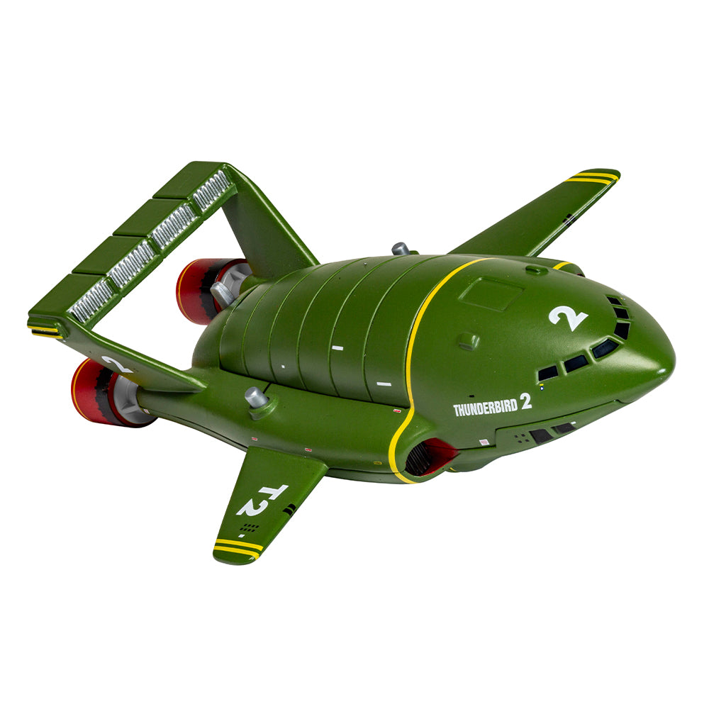 To celebrate 60 years of Thunderbirds, this re-release of Thunderbird 2 and 4 rights a wrong that fans will truly appreciate! For the first time, Thunderbird 2 is produced in the correct shade of apple green with a matte paint finish, making it our most screen-accurate representation of this iconic machine. It also comes in premium anniversary packaging for collectors.THUNDERBIRD 2Thunderbird 2, piloted by Virgil Tracy, is the freighter that carries all of International Rescue’s ingenious heavy engineering equipment. With a maximum flying speed of 2,000 miles per hour, Thunderbird 2 is 250 feet long, has a wing span of 180 feet and stands 60 feet high.The centre section of the vehicle carries one of a selection of six pods, each housing the many different specialised rescue machines used by the International Rescue team: primarily Thunderbird 4, the Mole and the Firefly.Virgil is always on hand taking part in virtually every daring situation in which International Rescue is involved. Fearless and with an iron resolve, Virgil is also a complex young man who combines physical strength with his gentler side as a gifted artist and pianist.THUNDERBIRD 4Thunderbird 4, piloted by aquanaut Gordon Tracy, is a 30-foot-long underwater and sea surface craft. Although much smaller than the other Thunderbirds vehicles and with a limited range, TB4 plays a vital role in any underwater rescue operation.Gordon is good-natured and high-spirited, possessing a strength and tenacity that makes him a respected leader and commander. He is also one of the world’s fastest freestyle swimmers and a past Olympic champion at the butterfly stroke.