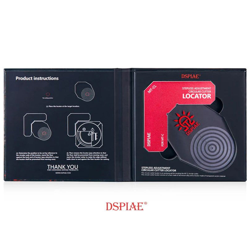 Stepless adjustment circular cutter locator is divided into two parts: the fixer and the locator. The fixer is made of aluminum alloy and processed with forging technics. The surface has been under oxidation and sand blasting treatment which is solid and durable. The bottom of which is provided with an anti-slip rubber layer to ensure high stability of the seat placed on the workbench. The locator made of transparent acrylic material. The circular scale surface contains, can be roughly determined the location of circular cutting. (a circular ruler is used to observe the cutting range).