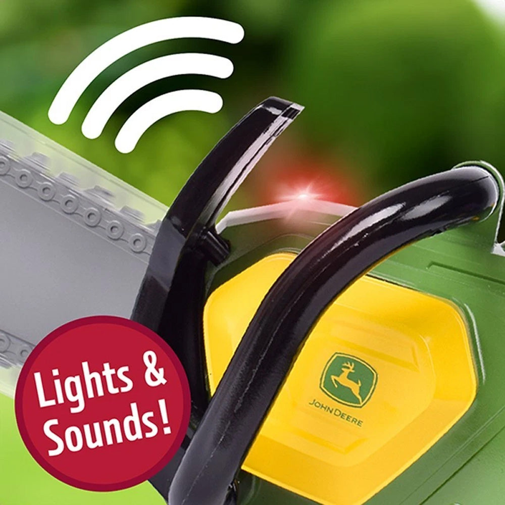 The removable battery pack enhances the immersive experience, fueling creativity, boosting motor skills, and encouraging imaginative role play. The John Deere Power Tools Chainsaw Toy is the ultimate addition to any imaginative adventure!