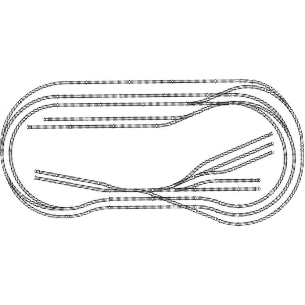 All the track, pins & buffers needed to recreate the layout. Please note that Buildings, Platforms, Underlay & Signals are not included unless otherwise stated.