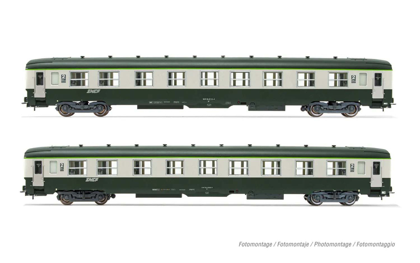 Jouef SNCF DEV AO U59 (A9) 2nd Class Coach Set Noodles (2) IV HJ4182 HO Gauge