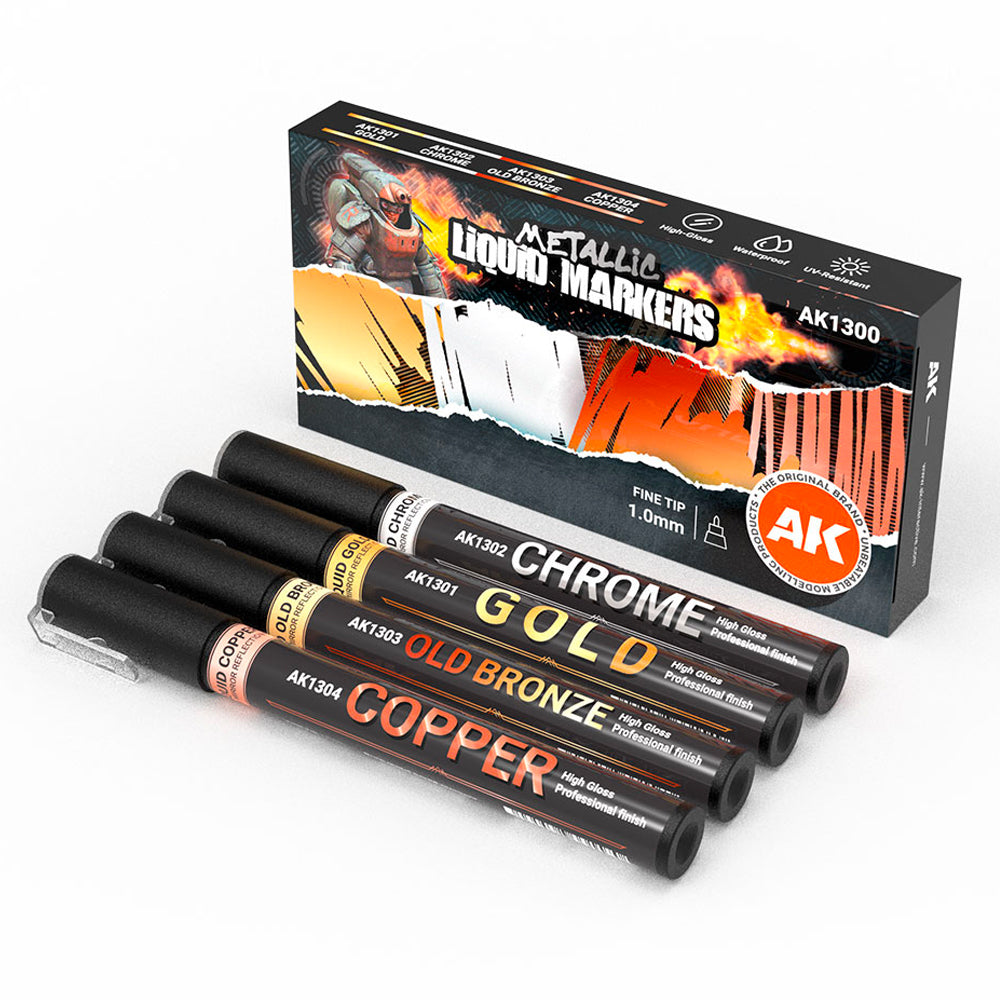 Metallic Marker Pen Set Gold, Chrome, Old Bronz...