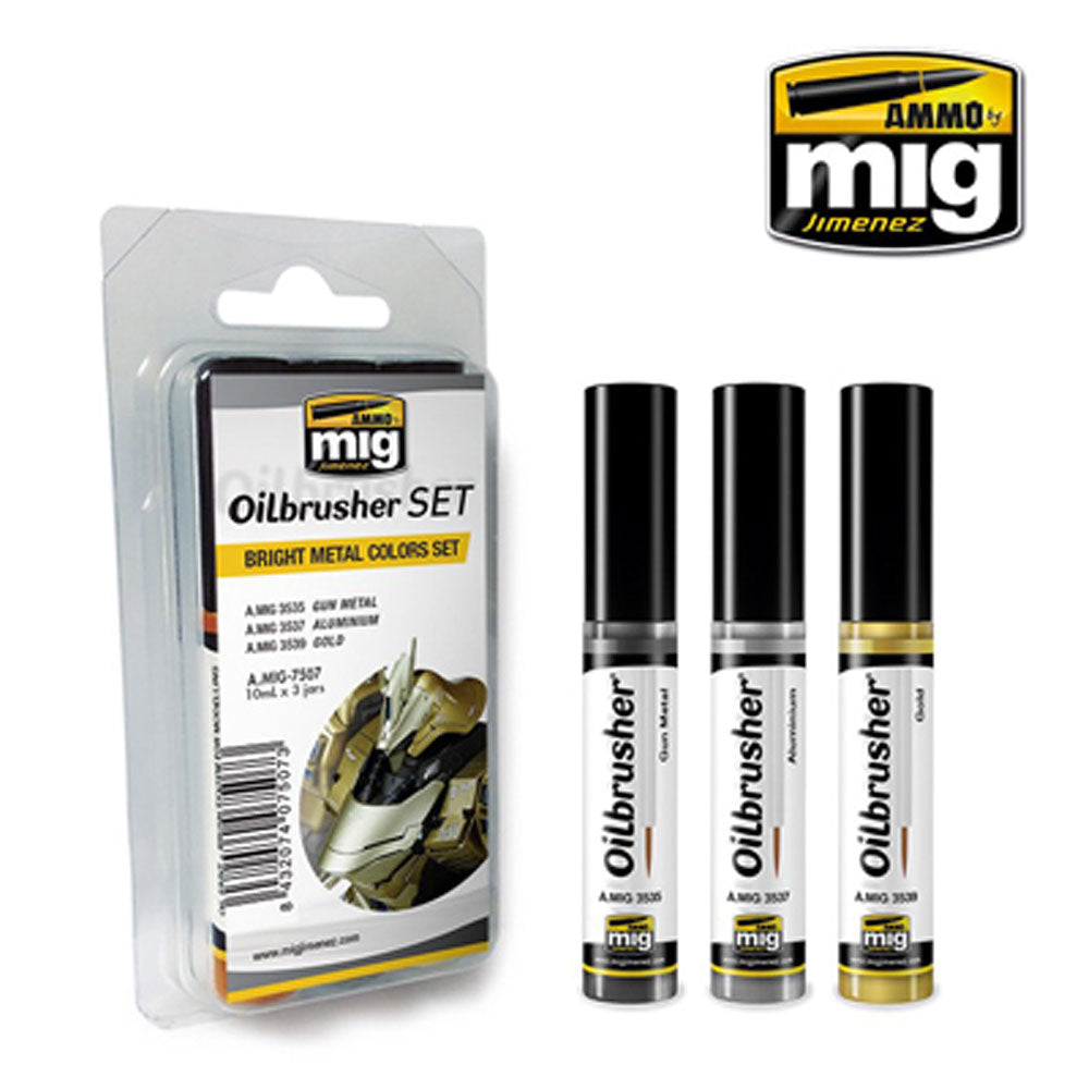 Mig Oilbrusher Set Bright Metal Colours For Mod...