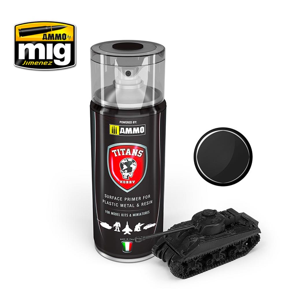 Ammo by Mig Titans Hobby 100 Black Matt Primer 400ml Model Spray Paint Can TTH100