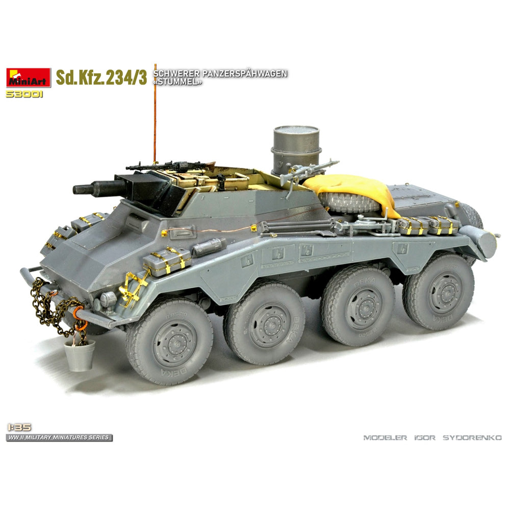 Detailed Armored Car: The Sd.Kfz.234/3 "Stummel" comes with highly accurate surface details, capturing the look and feel of the German scouting vehicle.
