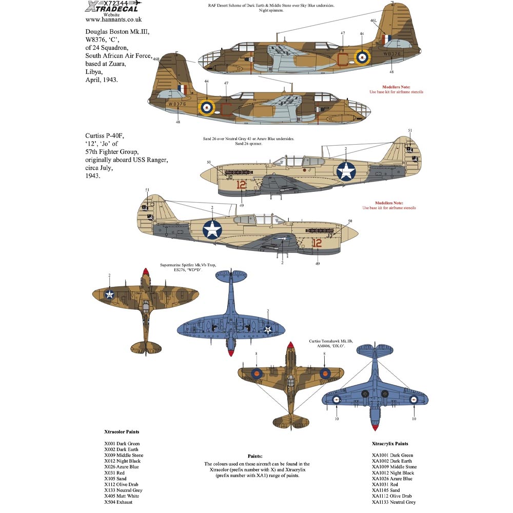 Xtradecal 72344 Desert Air War WWII Collection Part 1 1:72 Model Kit Decals