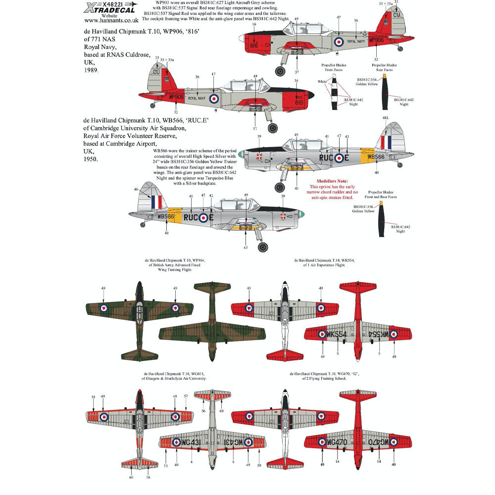 Xtradecal Military Service Part 1 Decal for 1:48 AirFix de Havilland Chipmunk