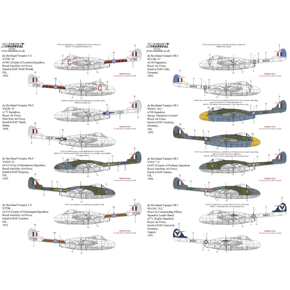 Xtradecal X48220 de Havilland Vampire F.3/FB.5 Collection 1:48 RAF 1950s