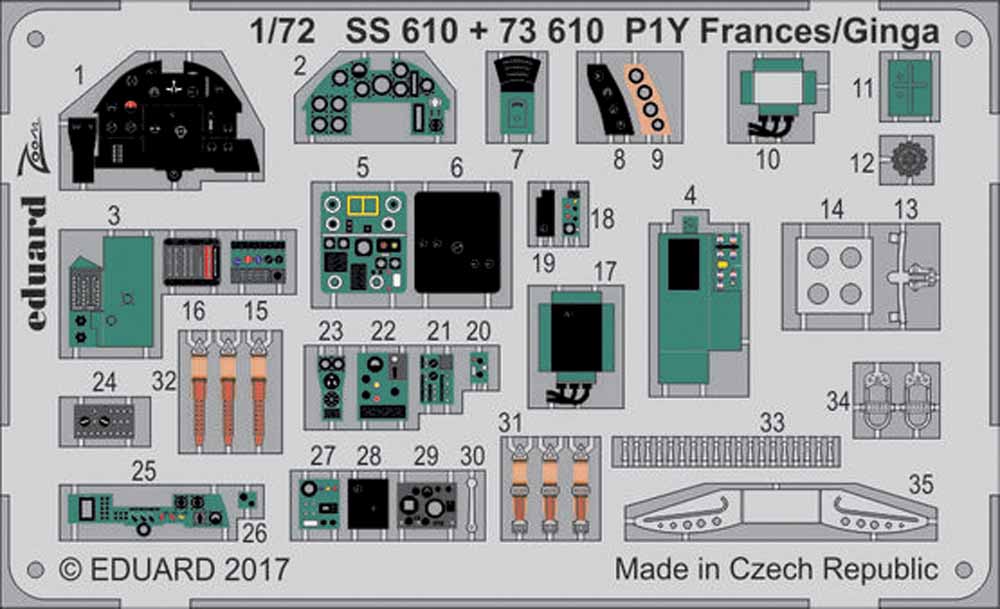 Eduard 73610 Etched Aircraft Detailling Set 1:72 Kugisho P1Y1-S/P1Y2 Ginga