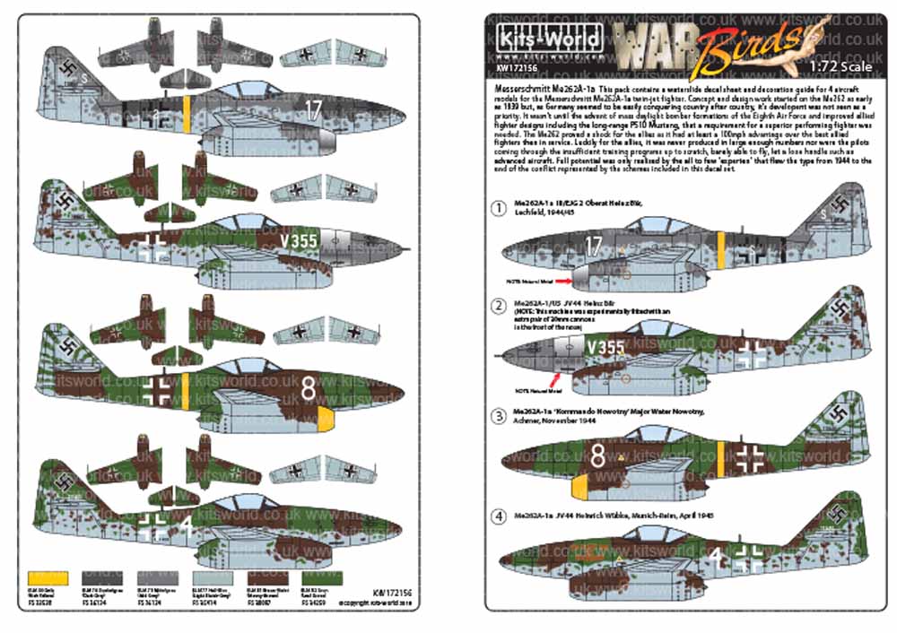 Aircraft Decals 1:72 Messerschmitt Me-262A-1a I...