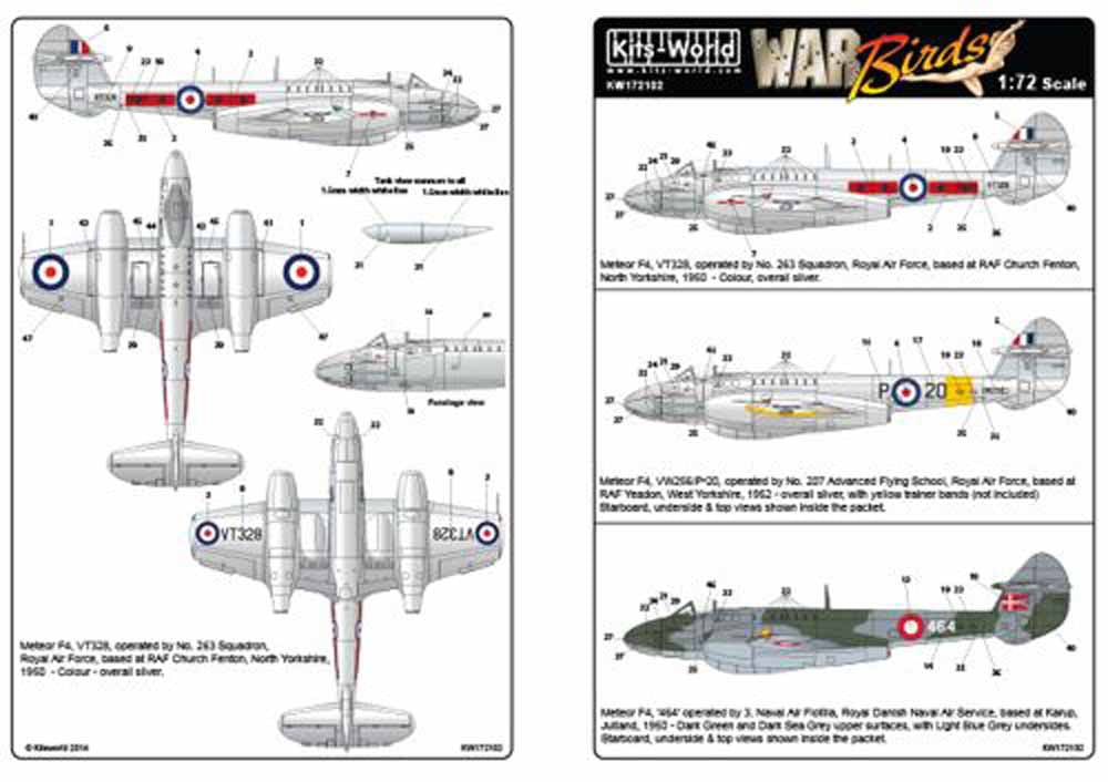 Aircraft Decals 1:72 Gloster Meteor F.4, VT328,...