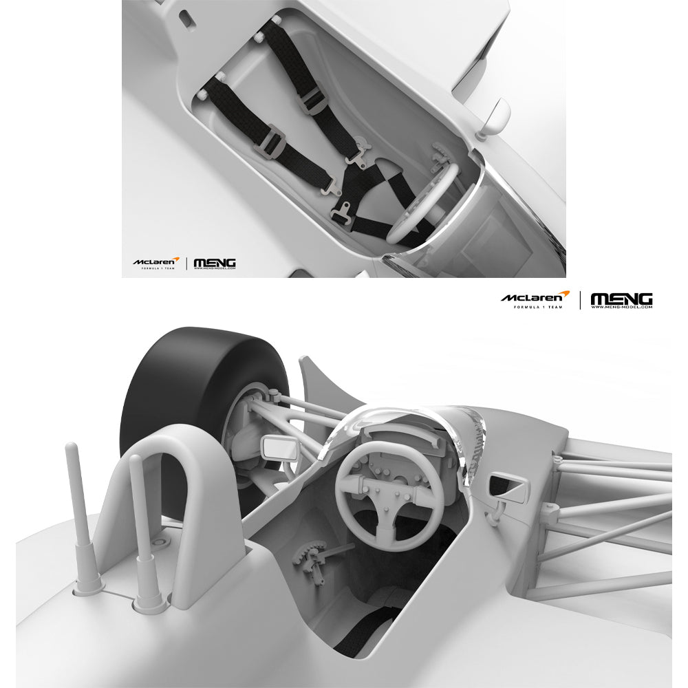 Licensed by McLaren Racing Limited, MENG will soon release the CS-007 1/24 McLaren MP4/4 1988 model kit. The finished model will be 184mm long and 89mm wide. This kit includes precision PE parts, fine decals, carbon-fiber decals and also metallic effect decals. You have the options to build the model as the car driven by Ayrton Senna or Alain Prost. Let's take a look at the details of this kit.