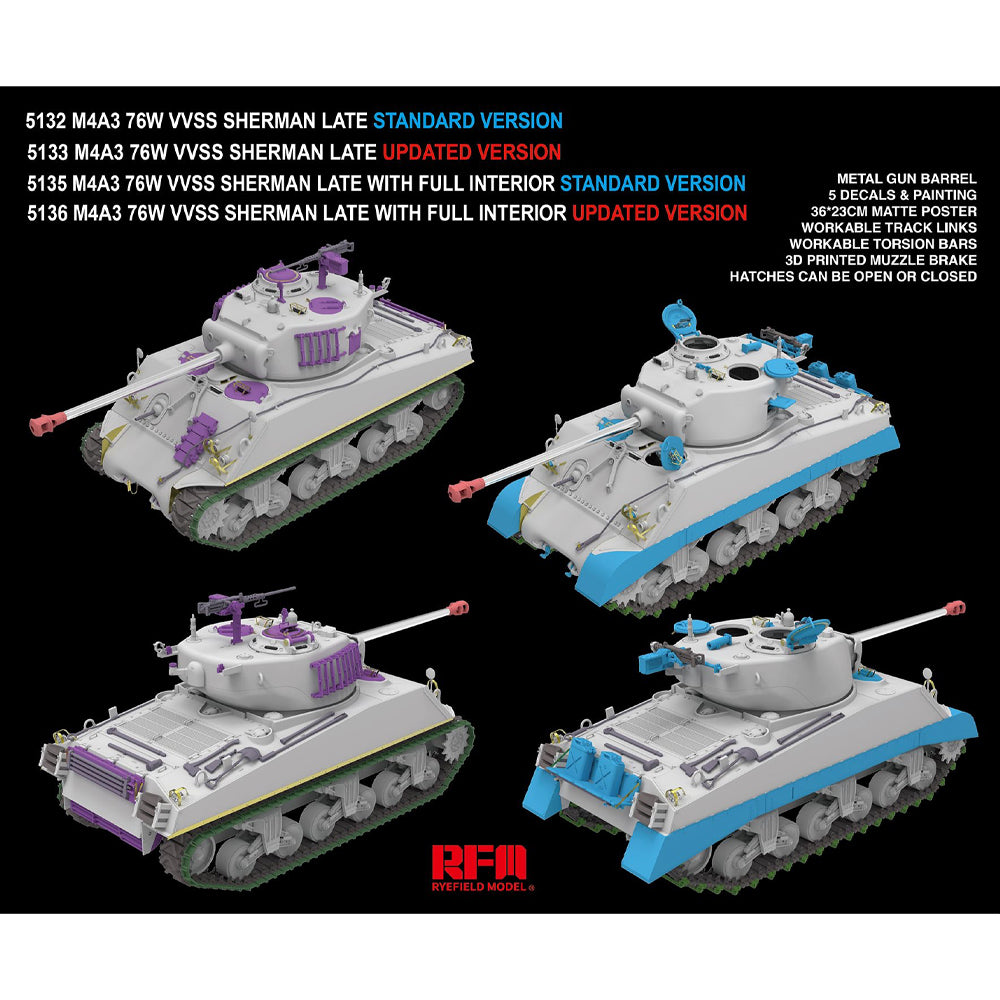 Ryefield Models 5135 M4A3 76W VVSS Sherman Late w/Interior Stand. 1:35 Model Kit