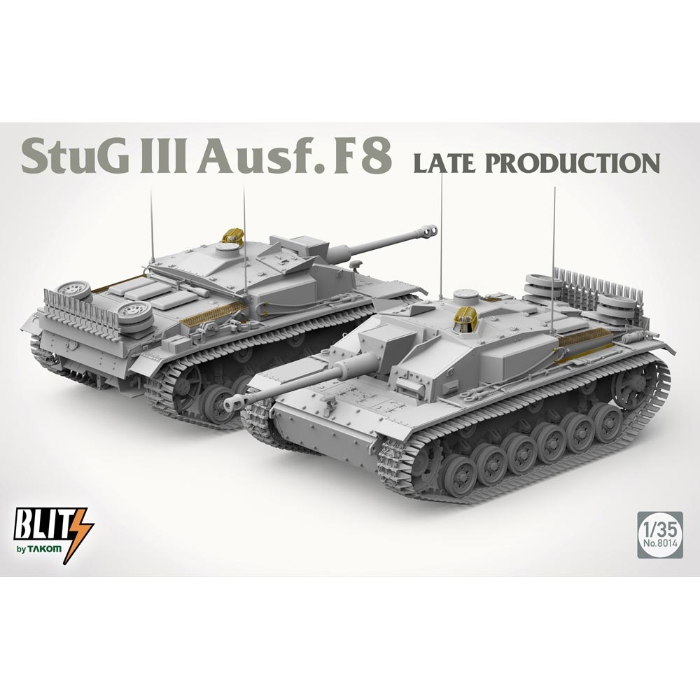 New Takom BLITZ series model kit of the German WWII Sturmgeschütz III assault gun (StuG III), “F/8” denoting the 8th version of the Panzer III hull.