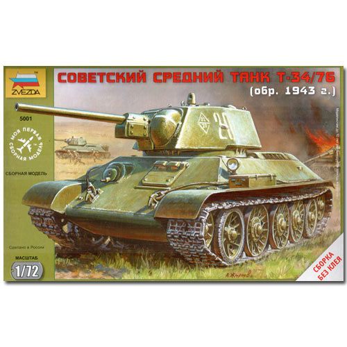 ZVEZDA T34 Russian Tank Snap Fit Model Kit 1:72