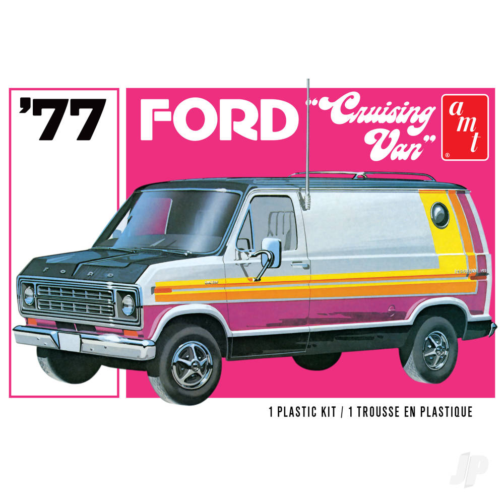Hey Kats! It’s back; and better than before… AMT’s 1977 Ford Cruising Van! This super-detailed kit builds into an authentic replica of Ford’s groovy factory-custom street van. Enticing, improved features like a gigantic decal sheet with two full sets of carefully researched factory stripe options and special pad-printed Firestone tires are sure to please. It even includes newly-tooled authentic wheel covers, much more accurate to the 1:1 vehicle! Retro Deluxe packaging seals the deal. Get cruisin’ with AMT!