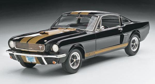 In 1964 at the international exhibition in New York an attractively designed coup, specially developed for the younger driver was shown to the public. This sporty and economical Ford Mustang, the originator of the "Pony Cars", was available from April '64 and within six months Ford had sold an unbelievable 680,000. In 1965 a high-performance version of the Mustang, the GT 350 built by Carroll Shelby with a 4.7 litre V8 engine appeared. The Hertz car rental company ordered 1000 of the GT 350 H (for Hertz) in black with gold trim, to enable their customers to rent "racing cars" and this 306 bhp exceptional Mustang very quickly found favour with them.