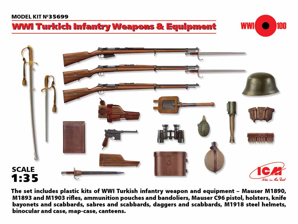 ICM 35699 Turkish Infantry (1915-1918) Weapons & Equipment 1:35 Model Kit Figure