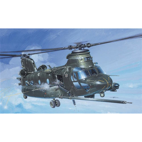 The medium transport and attack helicopter Chinook, developed for the U.S. Army during the sixties in its most recent versions, is also in service with many other armed forces around the world. This version has been substantially modified and was designed for special missions of the U.S. Armed Forces. It is a long range version with large tanks originally developed for civilian use. The MH-47 is equipped with sophisticated night vision and satellite navigational systems. Furthermore the chopper features efficient defense armament based on various machine guns.