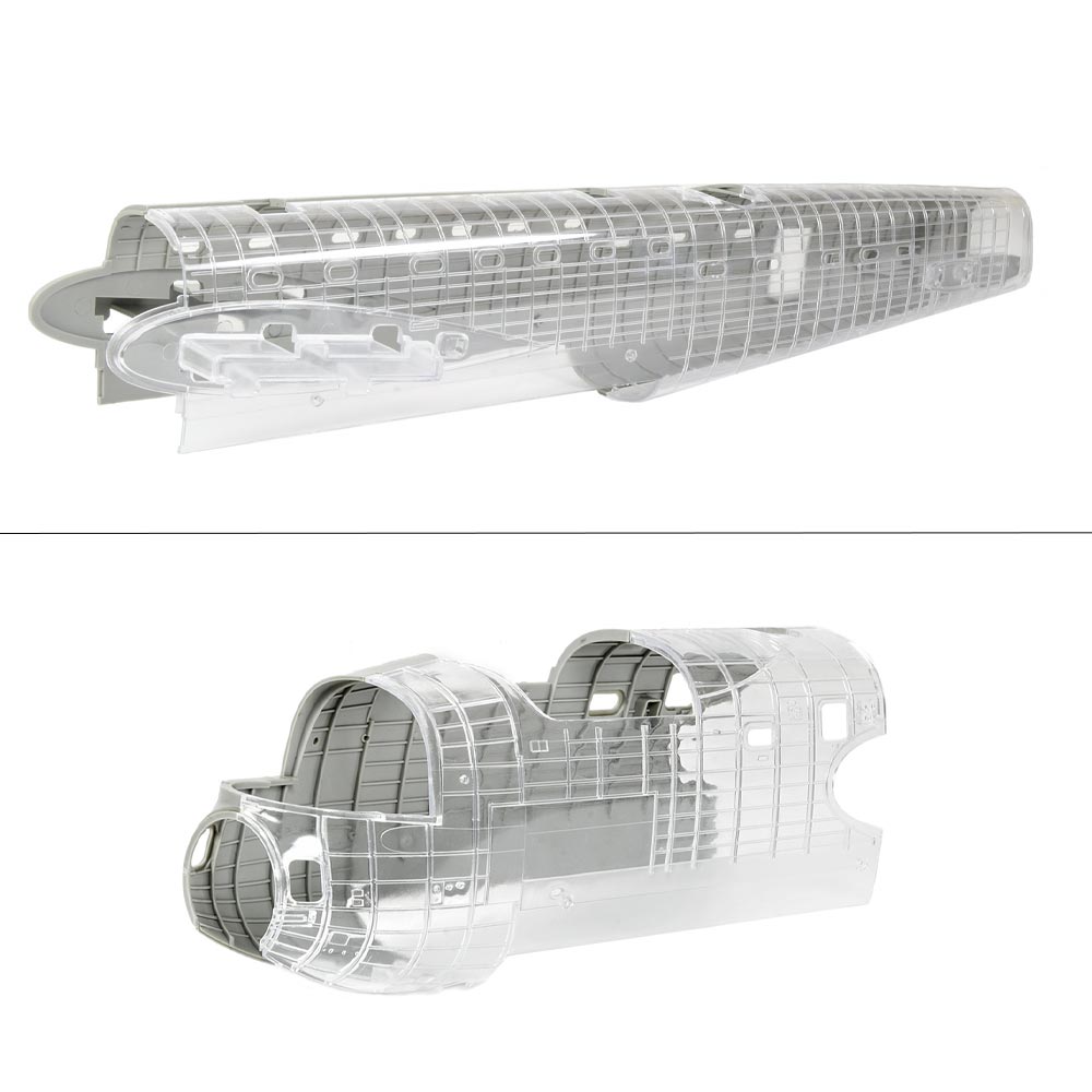In production the fuselage and nose section will be injected without surface detail in crystal clear plastic first. The moulds will then be modified and surface detail added; an irreversible change meaning the clear version can never be produced again! Length 663mm,