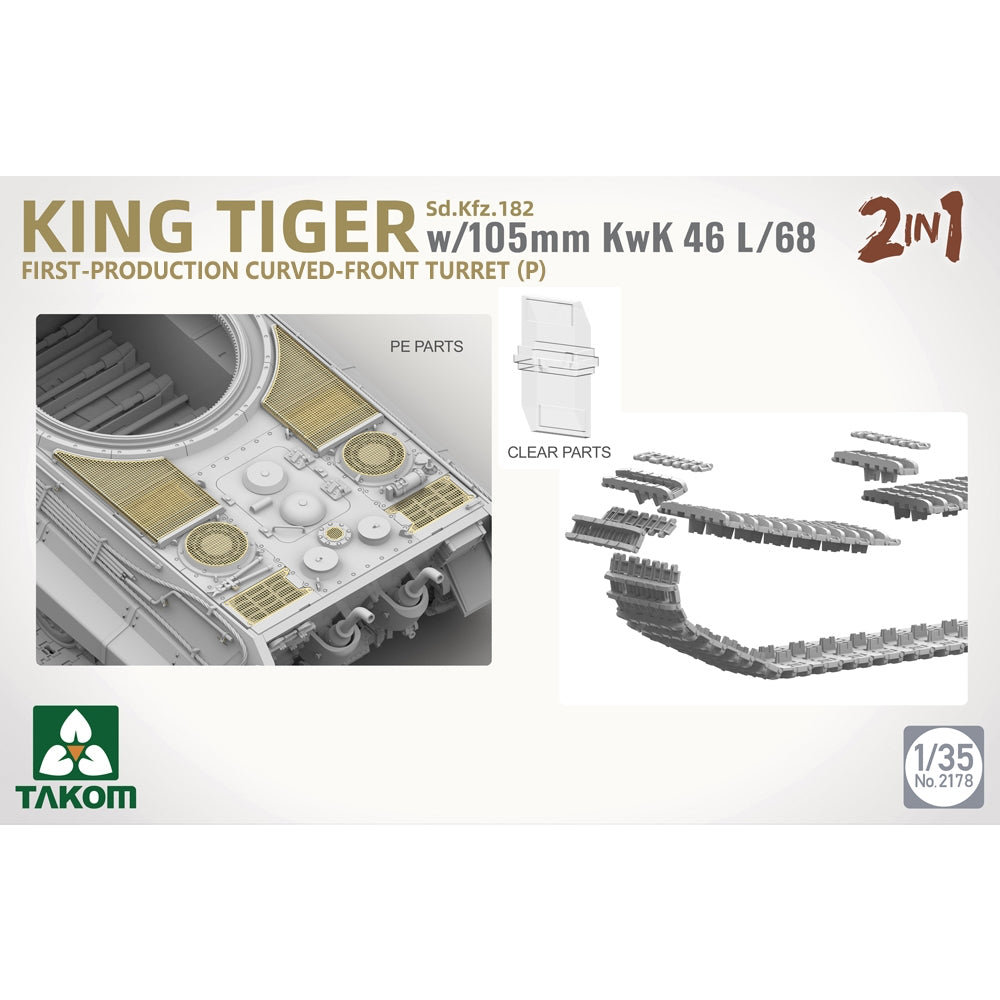 Takom 2178 German Heavy Tank SdKfz 182 King Tiger w/105mm KwK 46L/68 2-in-1 1:35 Model Kit