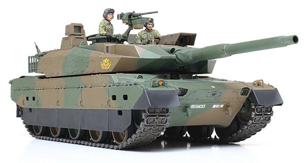 The Type 10 is the Japan Ground Self Defense Force's next generation main battle tank. It joins its predecessors, the Type 61, Type 74 and Type 90 in the Tamiya 1/35 Military Miniatures series. The Type 10 was first shown to the world in 2010 (that's where the 10 in its name comes from), and was assigned to units starting in 2012. Among the many advances from the previous Type 90 model are a Japanese-made 120mm smoothbore main gun, and the so-called C4I system. This state-of-the-art computerized system allows the Type 10 to be connected to a computer network and share information with other tanks, enabling coordinated actions.