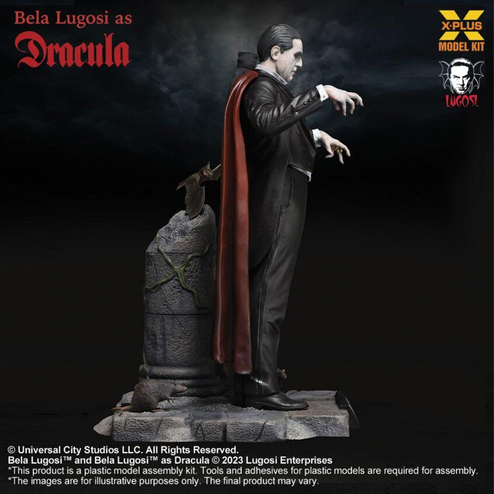 This scale model kit embodies the iconic pose associated with the character, encompassing the enigmatic charisma and aristocratic charm that defines Dracula. The extended arms and fingers elegantly curled, that give the hands a claw-like appearance, create a mesmerizing silhouette that has become synonymous with the character's sinister elegance and theatricality.