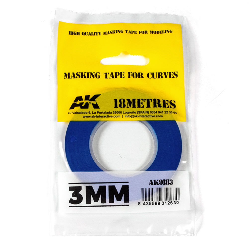 AK Interactive 9183 3mm Blue Masking Tape for Curves - Model Painting 18m Long