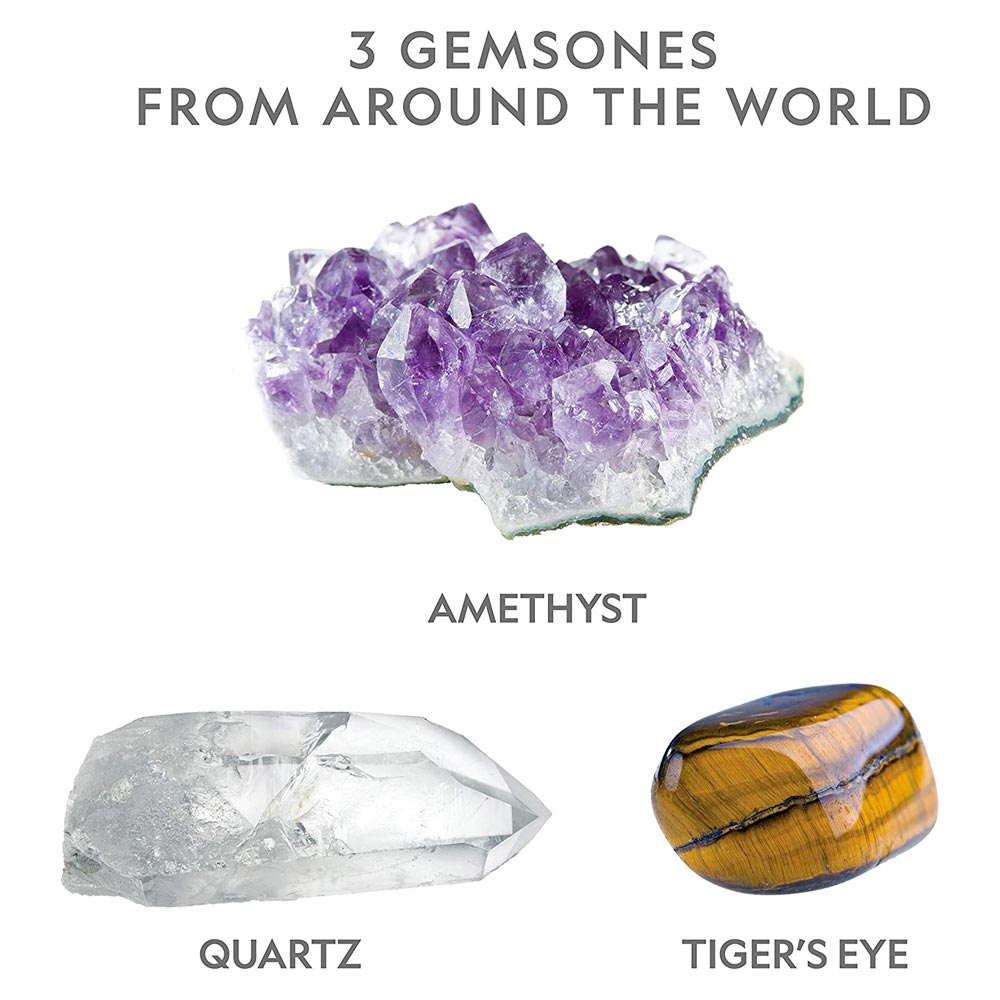 - FIND 3 AMAZING GENUINE GEMSTONES - uncover genuine amethyst, quartz and tiger's eye crystals and gemstones to start your rock collection