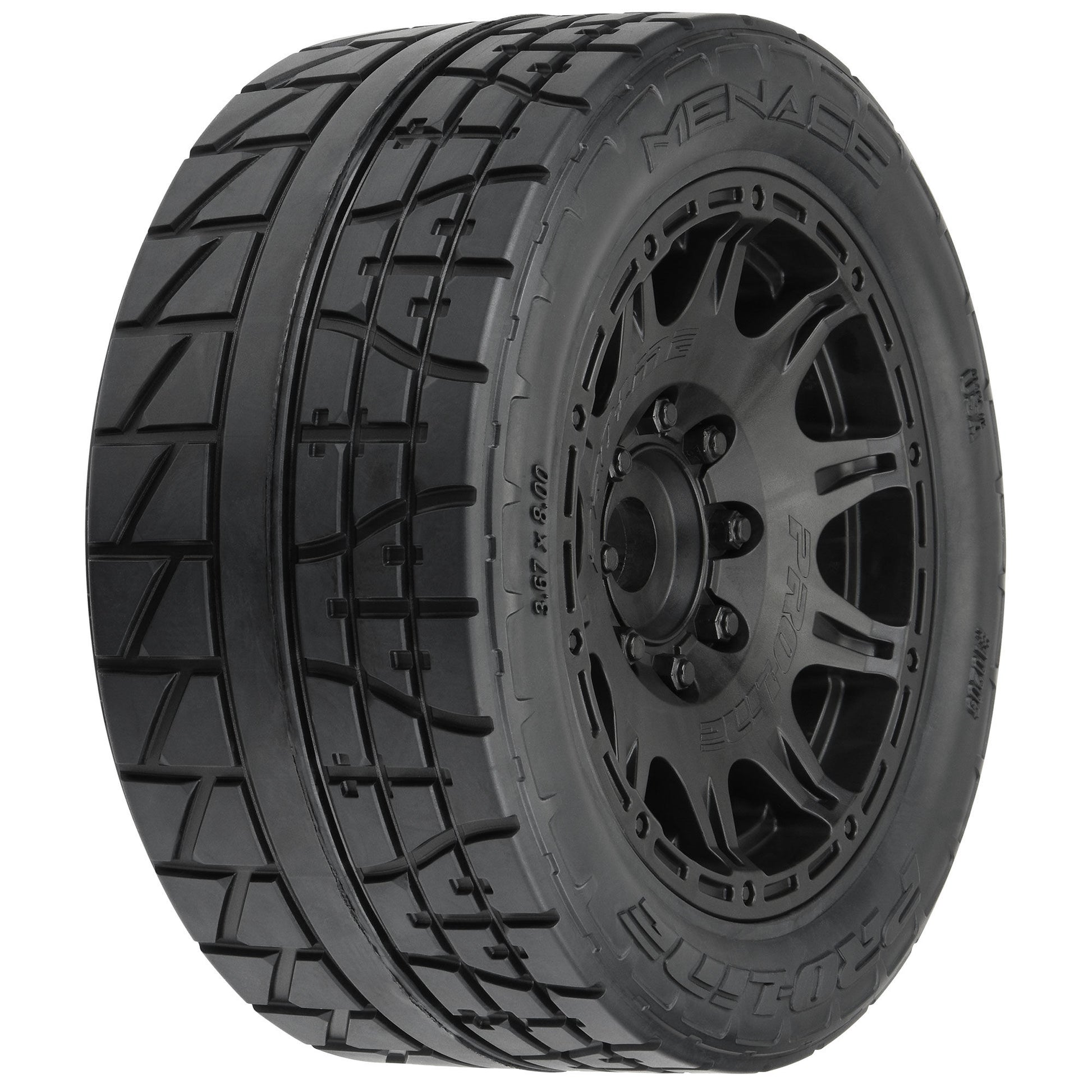 PRO1020510 | Menace HP Street BELTED Tires Mounted on Raid 5.7" Black Wheels (2) for X-MAXX®, KRATON™ 8S & Other Large Scale 24mm Hex Vehicles Front or Rear