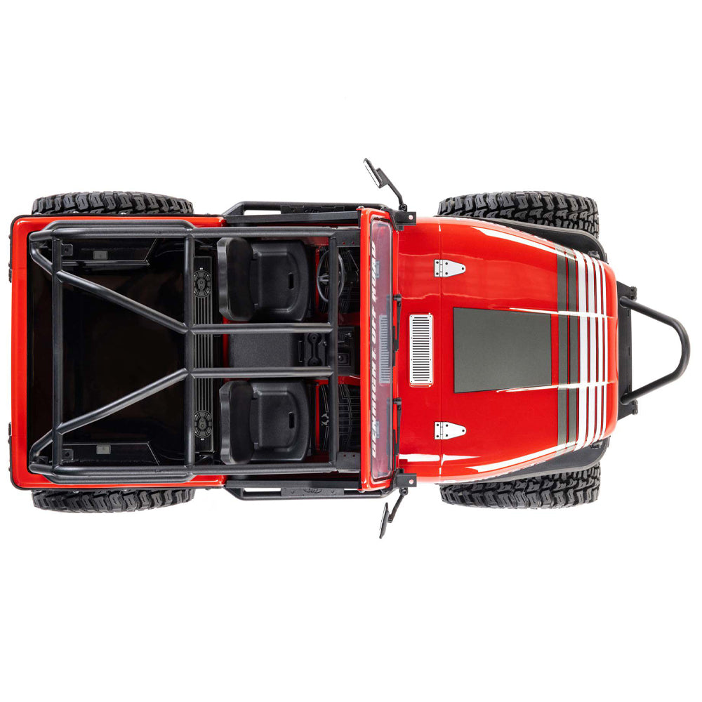 While the SCX10 III Jeep CJ-7 comes engineered and equipped to take on any trail, it's the incredible scale detail that will have Axial fans eager to make it the canvas for their next rock crawling masterpiece. In addition to the officially licensed Jeep CJ-7 body, this rig features officially licensed Gen-Right bumpers and body armor, a full interior with opening centre console, a roll cage, and more. Even the wheels and tyres add to its authenticity. The wheels are officially licensed Raceline Daytona beadlocks, and the high-traction tyres are officially licensed Micky Thompson Baja Boss treads.