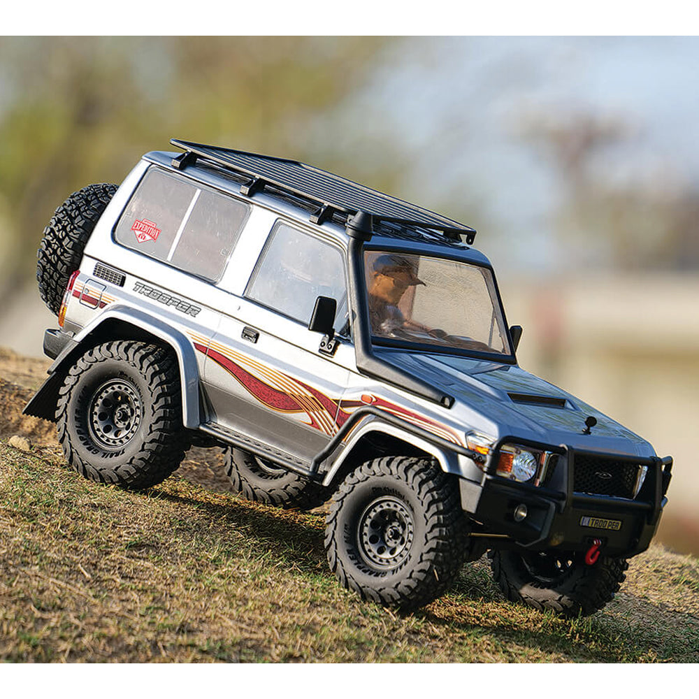 There is something about a short wheelbase trail rig that looks purposeful, and the new Trooper is no different. Mirroring that classic 2-door 80’s/90’s feel, the Trooper features an incredible, fully detailed scale bodyshell adorned with numerous moulded accessories, full function front and rear lights with scale light buckets, finished with an interior and driver figure that truly brings the vehicle to life.