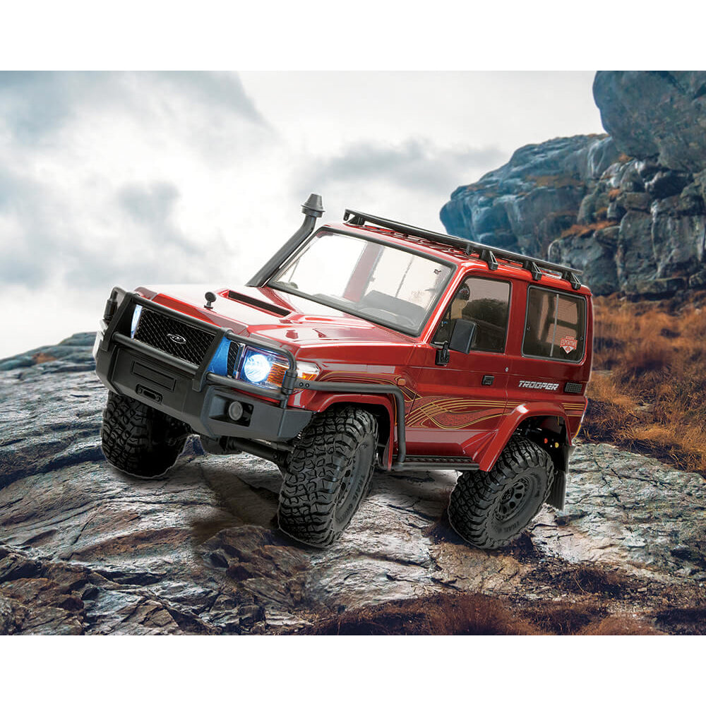 There is something about a short wheelbase trail rig that looks purposeful, and the new Trooper is no different. Mirroring that classic 2-door 80’s/90’s feel, the Trooper features an incredible, fully detailed scale bodyshell adorned with numerous moulded accessories, full function front and rear lights with scale light buckets, finished with an interior and driver figure that truly brings the vehicle to life.