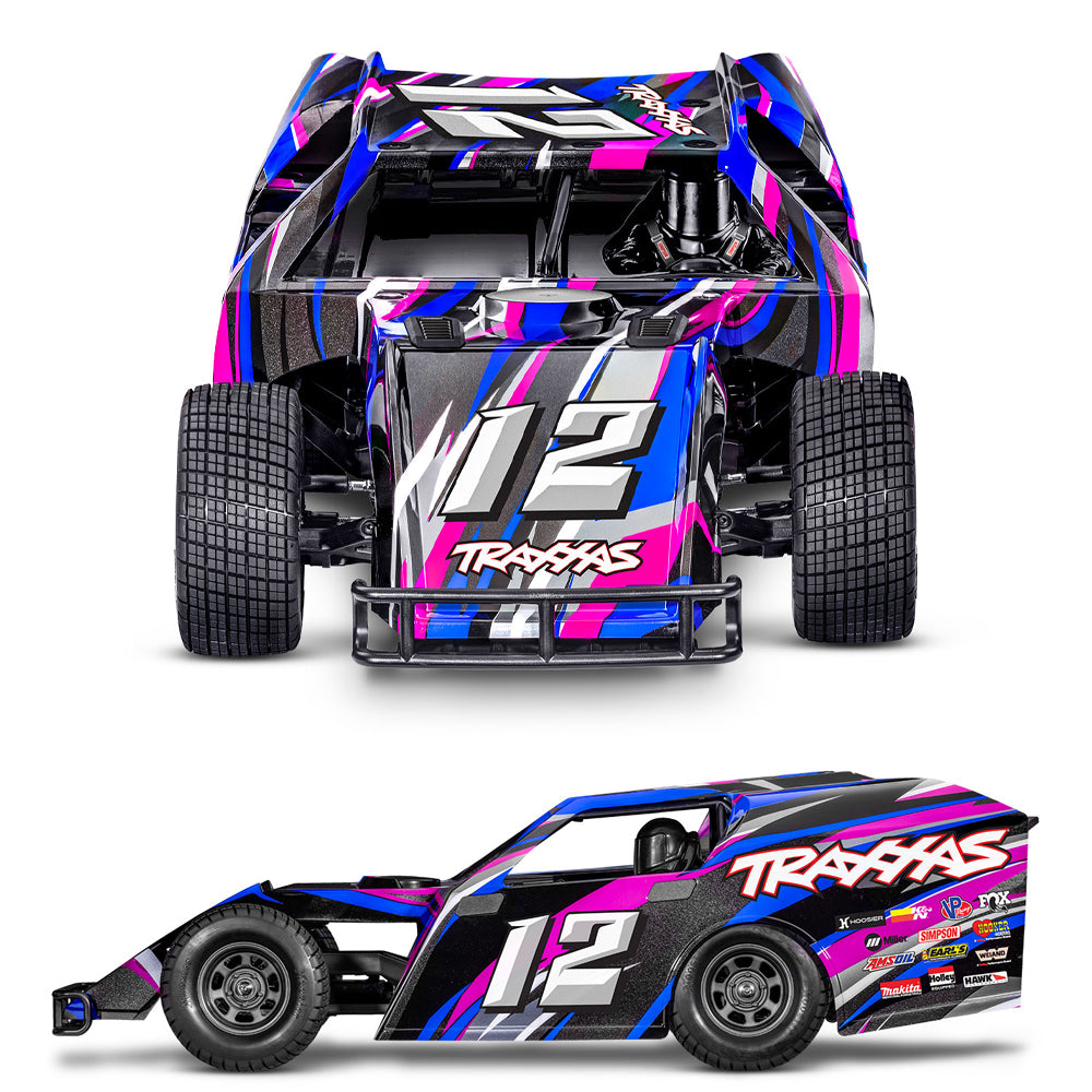 The Slash® Modified dirt oval racer is engineered to deliver competition-tuned track performance right out of the box. Slash’s already legendary durability has been enhanced with new Extreme Heavy Duty suspension components and performance upgrades such as aluminum GTR shocks, Magnum 272R™ transmission, tough clipless body, and the fast and reliable BL-2s™ brushless power system.