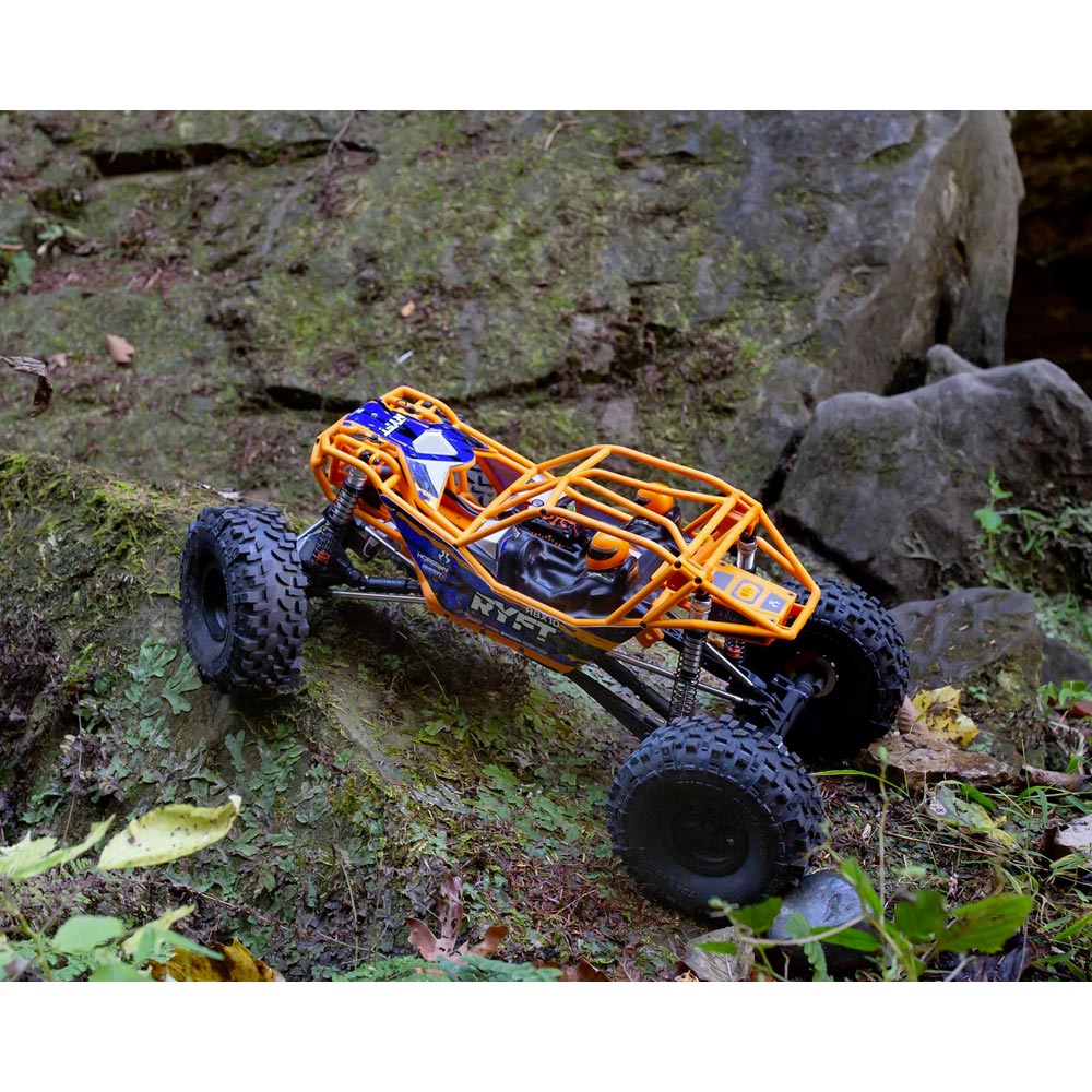 The Axial® RBX10™ Ryft™ 4WD is ideal for beginner to intermediate RC enthusiasts who are interested in the rock bouncing style of off-road driving over trails, dirt, gravel, rocks and more. It's available with a striking orange or black factory-applied finish and requires nothing except a battery and charger.